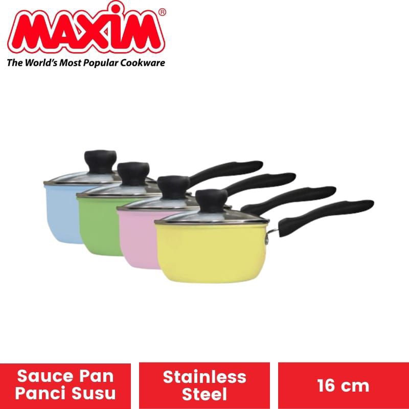 Maxim COLOURIS Skyline Panci Susu Indomie Sauce pan Saucepan 16 cm #Cocok untuk anak kos Maxim Panci Teflon Saucepan 16 cm yang terbuat dari material Aluminium yang dapat mendistribusikan panas secara cepat dan merata sehingga masakan akan matang dengan cepat dan sempurna, terdapat lapisan anti lengket pada wajan sehingga wajan mudah dibersihkan. Diameter panci 16 cm Tinggi Panci 8 cm panjang gagang 17 cm Bahan Berkualitas Desain Menarik Gagang kuat dan anti panas Mudah dibersihkan