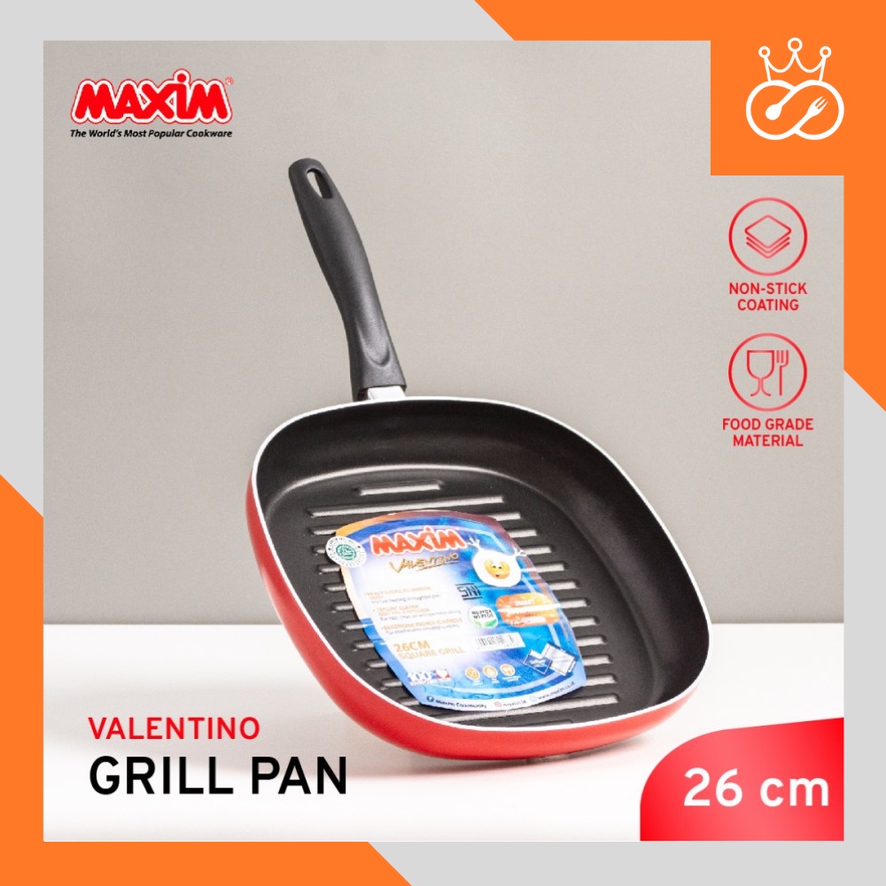 Alat Pemanggang Maxim Valentino Square Grill Alat Pemanggang Maxim Valentino Square Grill merupakan alat pemanggang modern dengan kualitas terbaik. Dibuat dari bahan Stainless berkualitas, yang dapat anda gunakan untuk memanggang daging, roti, dll. Dilapisi dengan lapisan teflon yang anti lengket sangat berguna ketika Anda harus membalik daging tanpa khawatir daging akan tertinggal. Alat pemanggang ini juga dilengkapi dengan anti gores, anti karat, dan yang paling penting adalah alat pemanggang ini mudah dibersihkan. Jadi, Anda tidak perlu khawatir bila wajan akan berkarat karena sering dicuci.
