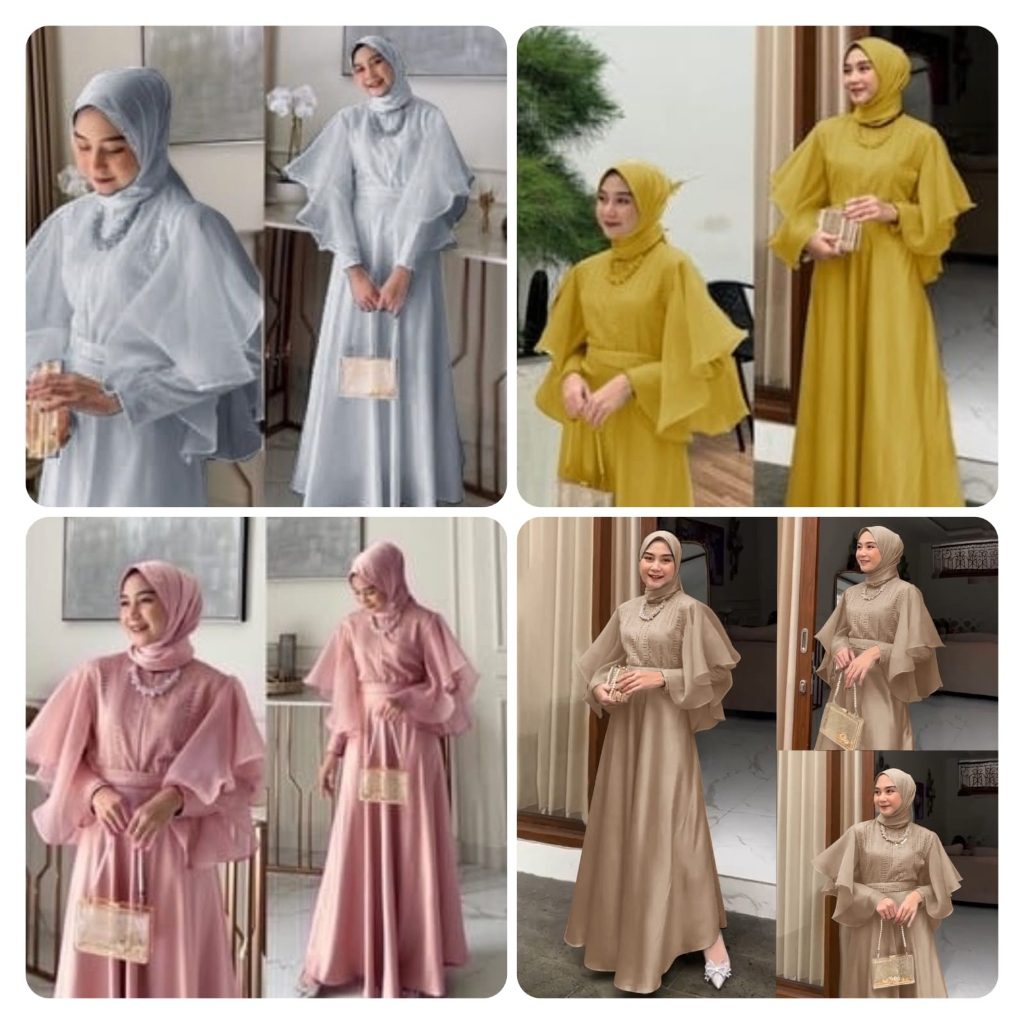 BAHAN : SATIN VELVET HALUS KOMBINASI BRUKAT MALIKA DAN ORGANZA SLETING DEPAN (BUSUI) FREE TALI PINGGANG NO PASHMINA
