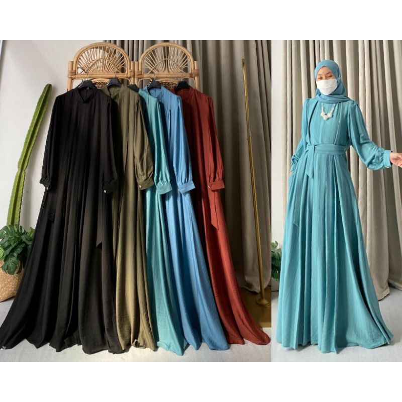 keterangan : • Dilipit dan dijahita bagian atas sampai pinggul,dari pinggul tidak dijahit jadi lebar banget bagian bawah, dan lipit jadi rapi • Resleting belakang • Hidden pocket di kedua sisi • Manset tangan kancing import (wudhu friendly) • Tali pinggang bisa di lepas pasang