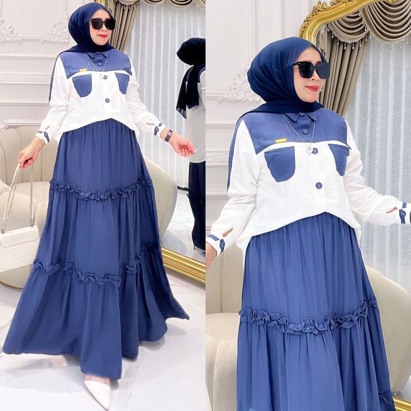 Mazaya One Set Rok Panjang Baju Setelan Wanita Kekinian Busana Muslim Wanita Terbaru Setelan Jumbo Ld115 cm One Set Crinkle