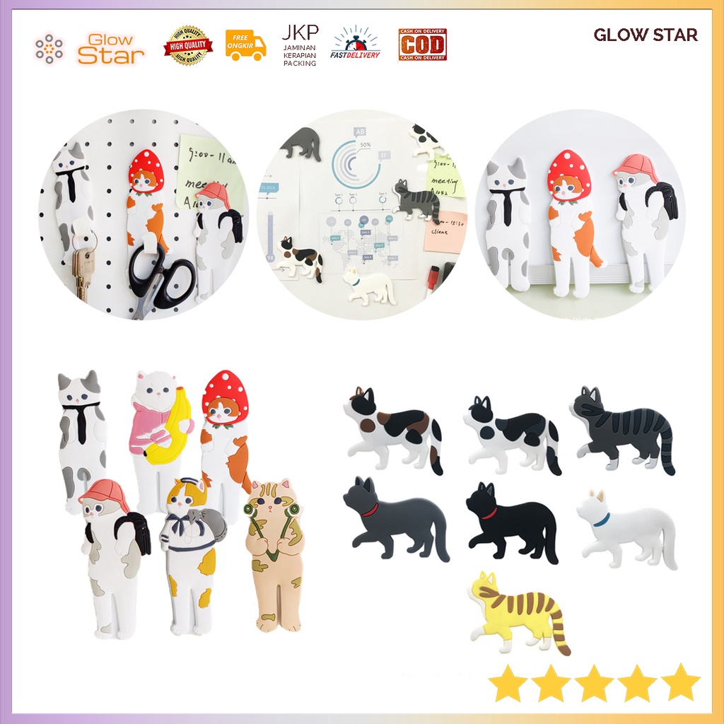 Detail MCAT Gantungan Lucu Magnet Bentuk Kucing Berjalan Bentuk Dekorasi Kulkas Magnetic Fridge Hook Hanger Bentuk Motif Kucing Cat Cute Lucu Cantolan Perekat Besi Rak