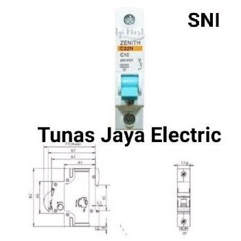 MCB (Miniature Circuit Breaker) biasa terdapat di panel listrik dan berfungsi untuk perlindungan terhadap beban lebih (Overload) dan hubungan arus pendek (Short Circuit) Merek: ZENITH Model: C32N Voltage (V): 220 / 440 VAC Current (A): 2A/4A/6A/10A Breaking capacity: 6 kA Mechanical lifetime: 10,000 times Electrical lifetime: 4,000 times
