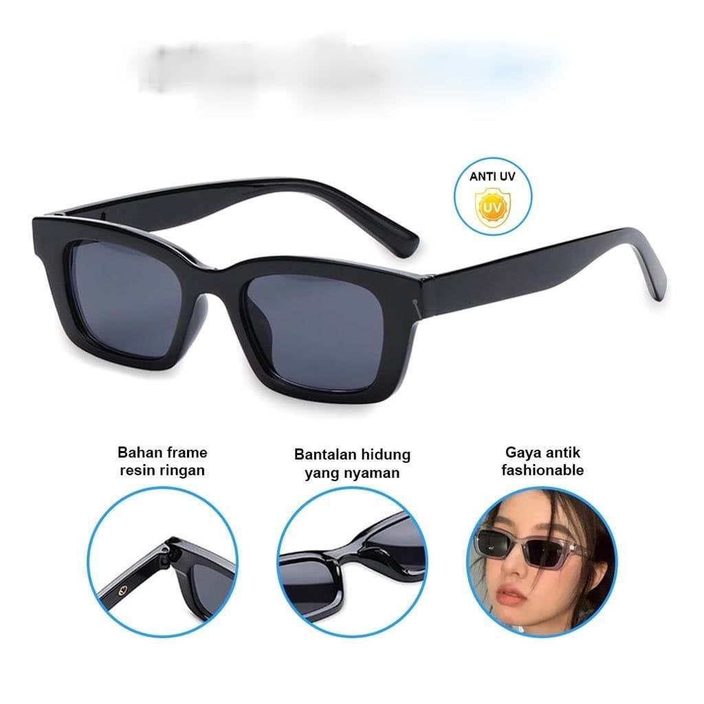 Detail MCC Kacamata Hitam Persegi PanjangKacamata Retro Vintage Kacamata Hitam Swag Fashion Trendy