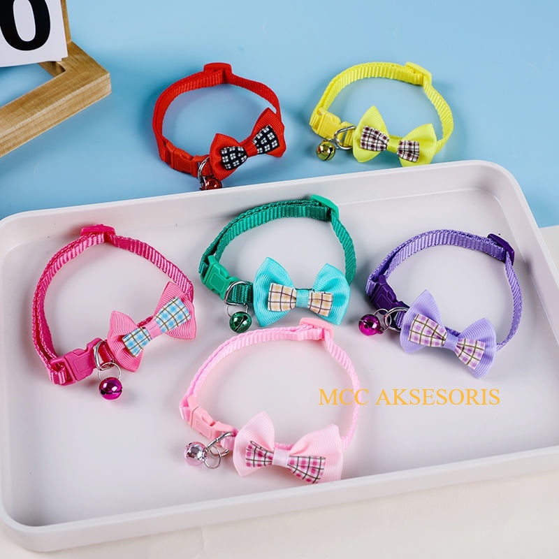 Kalung model pita kupu kupu yang di khususkan untuk hewan peliharaan ini memiliki model dan warna yang lucu.di lengkapi dengan lonceng yang berbunyi dan di tiap kalung yang mempunyai tambahan pita kain kotak kotak seperti yang ada di foto.