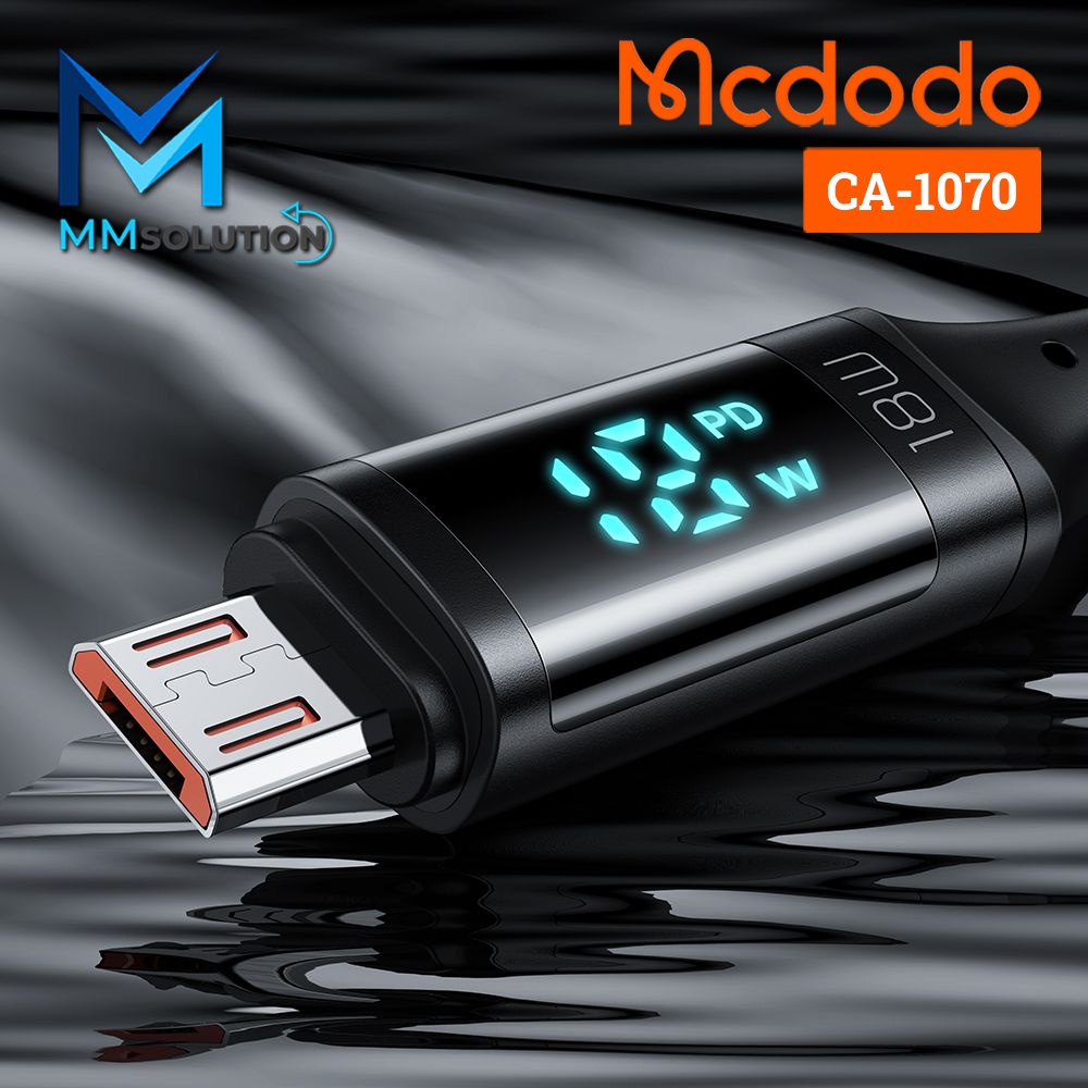 Deskripsi : - Merek : MCDODO - Model : CA-1070 - Material : Aluminum alloy + nylon - Interface : Micro USB - Output : 3A, silver - Length : 1.2m - Function : Digital display, charging & data transmission - Support : Fast charging 18W