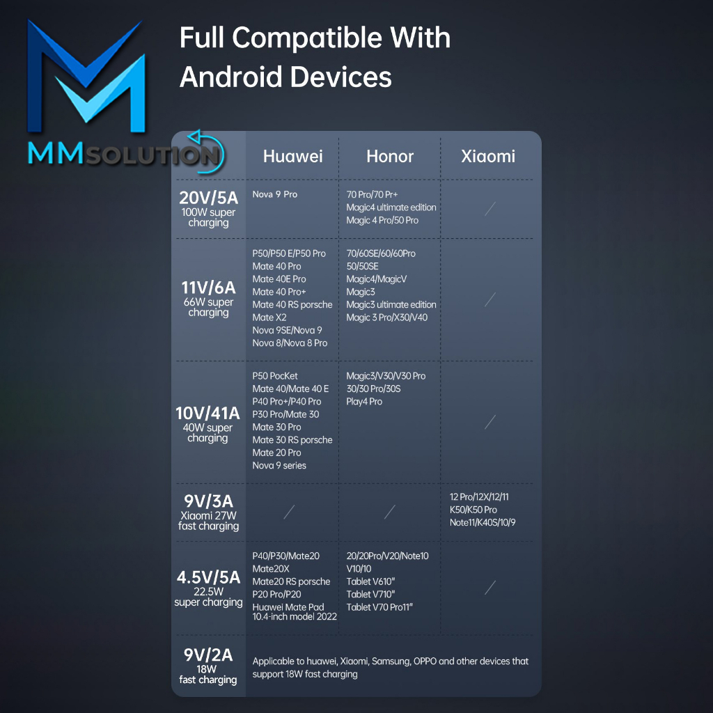 -Transparent housing makes circuit components clearly visible -Smart patented IC for over charging protection -Compatible IC for Huawei SCP, Samsung AFC, OPPO VOOC, QC2.0/3.0/4.0 -Automatically circularly carging by two hours -Breathing LED with orange and blue color for showing quick charging status -Charging and data sync