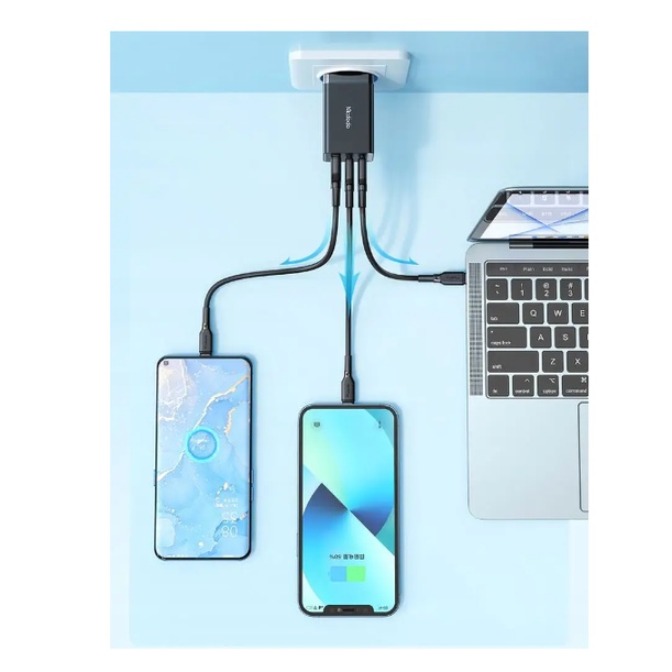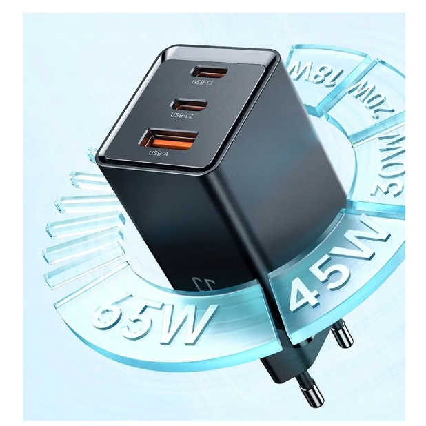 MCDODO CH-1542 Adaptor Mini Charger GAN Dual Type C 65W iPhone Samsung (MINI) - Kabel Type C to C - Material : Fireproof PC - Output : USB-C1 + USB-C2 : 45w + 18w (63w Max.) - Output : USB-C1 + USB-A : 45w + 18w (63w Max.) - Output : USB-C2+USB-A : 5V3A (15w Max.) - Output : USB-C1+(USB-C2+USB-A) : 45w+15w (60w Max.)