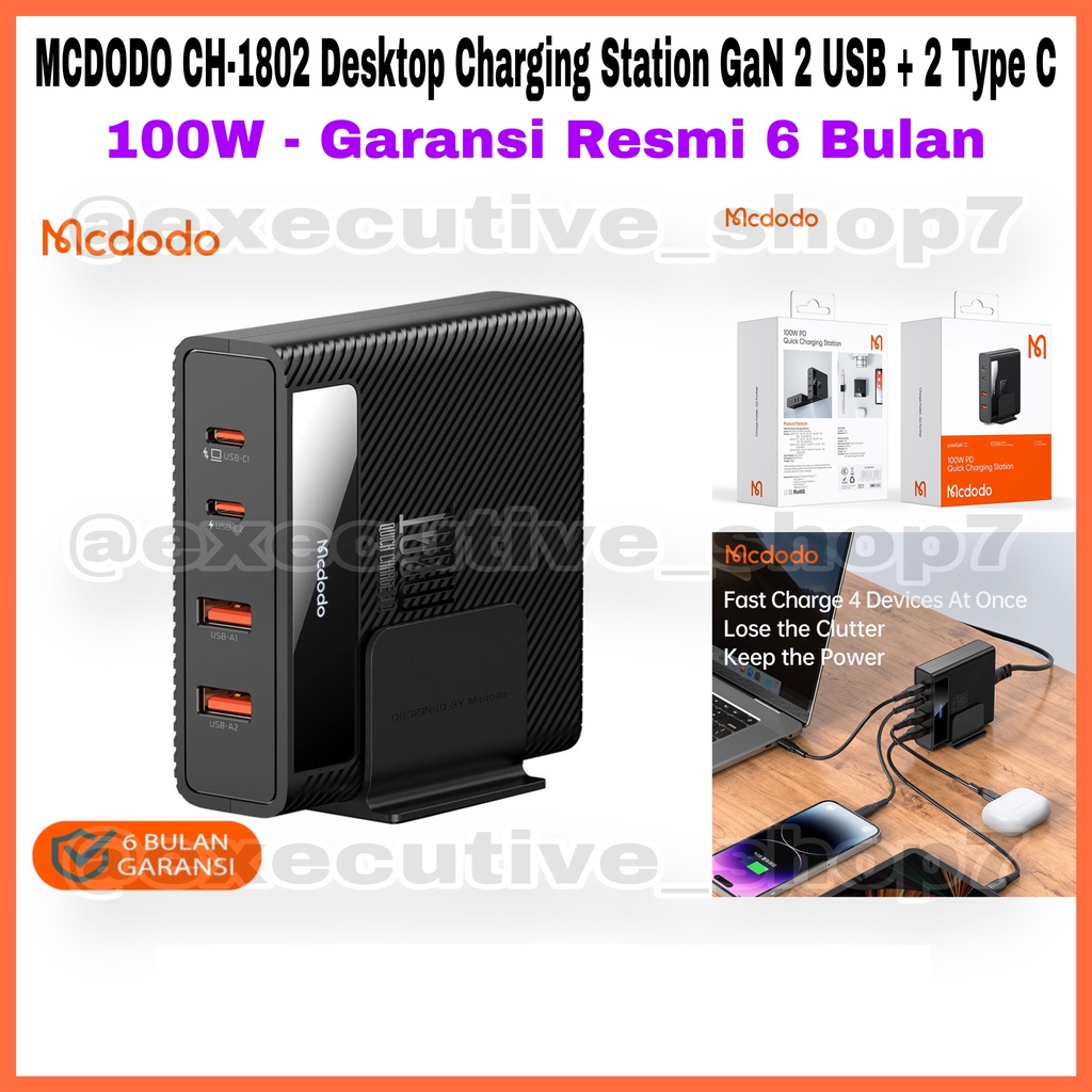 Handphone & Aksesoris > Kabel, Charger, & Konverter > Charger > MCDODO CH-1802 Desktop Charging Station GaN 2 USB + 2 Type C - 100W - Garansi Resmi 6 Bulan