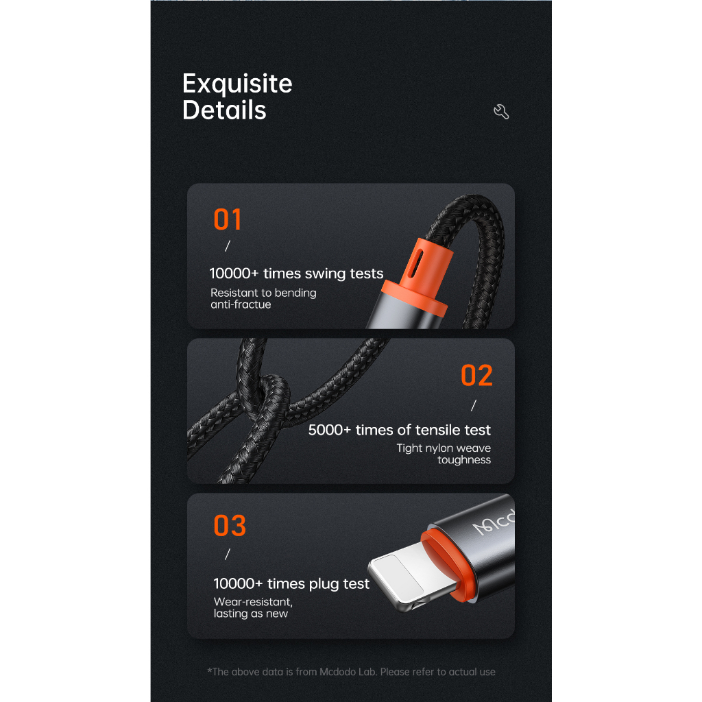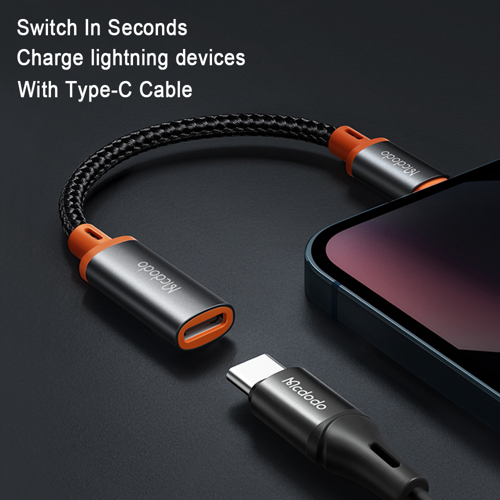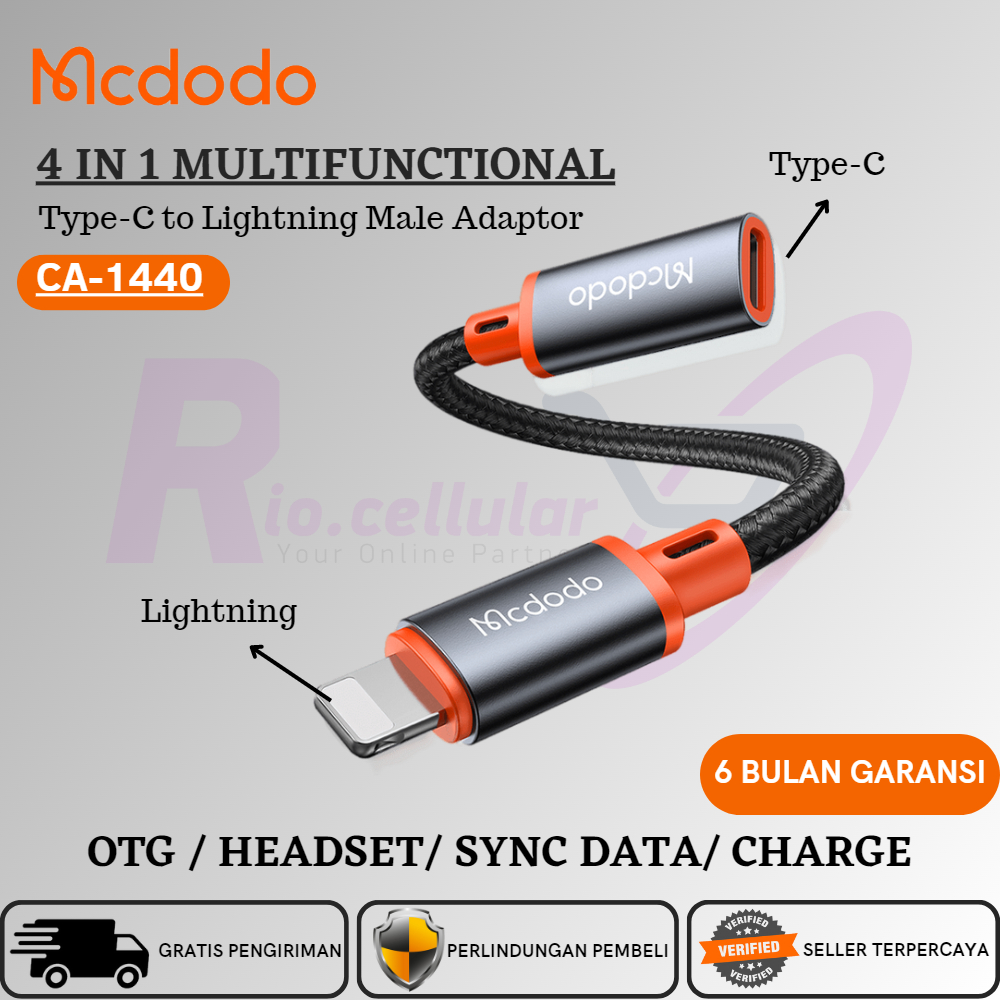Spesifiksi: - Merek : MCDODO - Model : CA-1440 - Material : Aluminum Alloy/ Nylon - Interface : Lightning To Type C - Color : Black - Current : 2A Max - Function : Charging , Audio + Data Transmission
