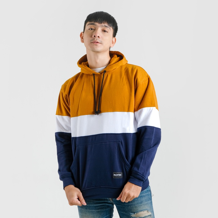 Detail Mcvois Sweater Hoodie Kombinasi 3D Mustard Bawah Navy