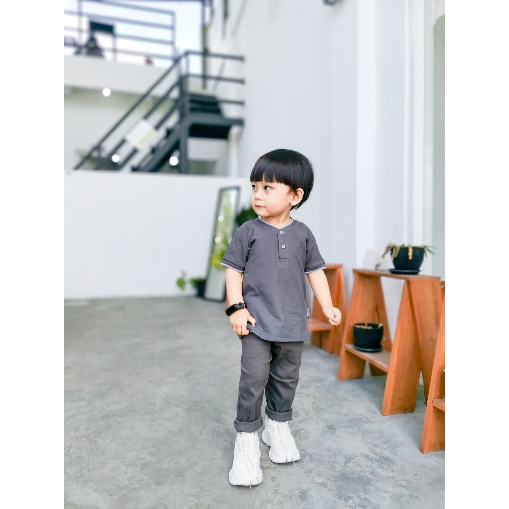 Hadir dengan 3 warna kombinasi terbaik: -Brown -Navy -Grey Bahan : Cotton Lacoste Premium Kualitas bagus tebal lembut adem Nyaman untuk buah hati Anda