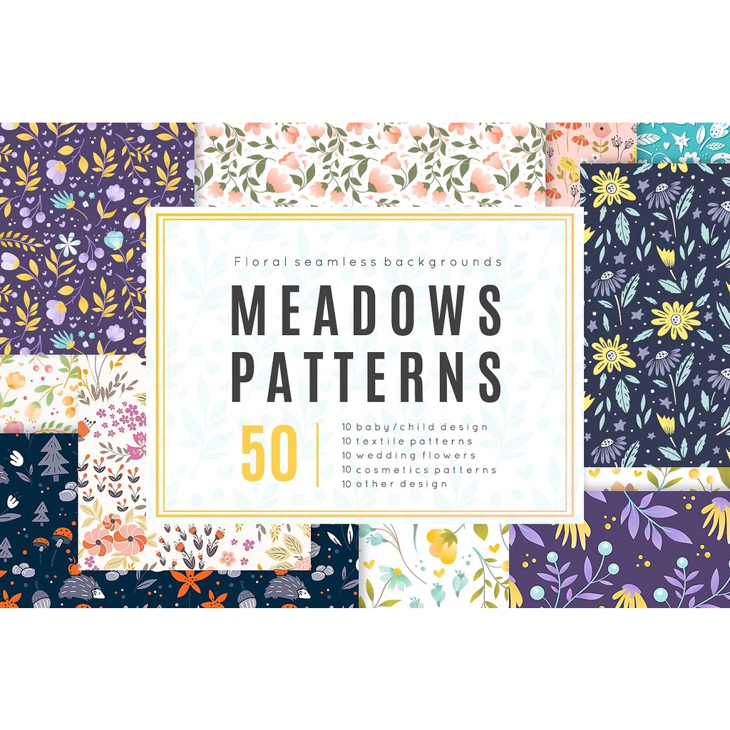 Introducing Meadow patterns collection, It is 50 vector seamless patterns in AI, EPS, PNG and JPG formats . In the collection, you will find floral and abstract patterns, patterns with forest animals, butterflies and planes.