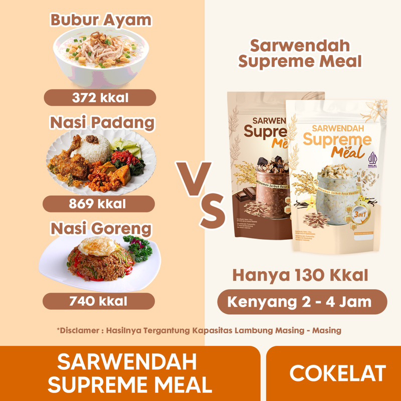 Detail MEAL SARWENDAH SUPREME MEAL Pengganti Makanan / Minuman Serbuk Rasa Vanila / Cokelat dengan Meal Replacement