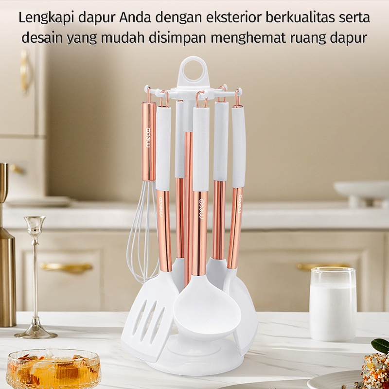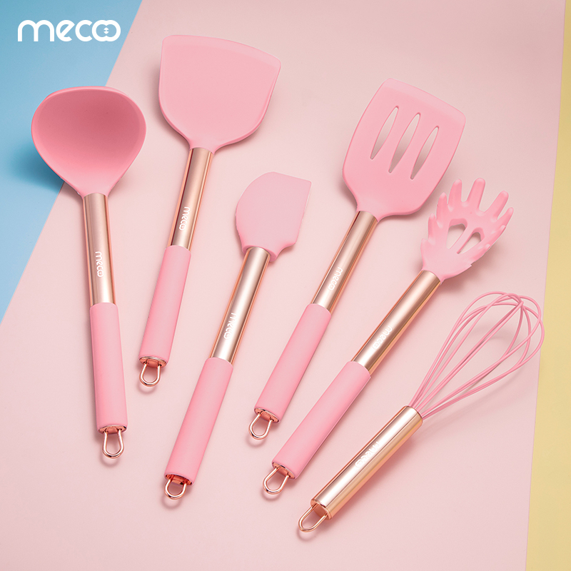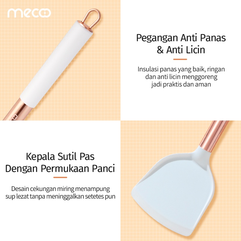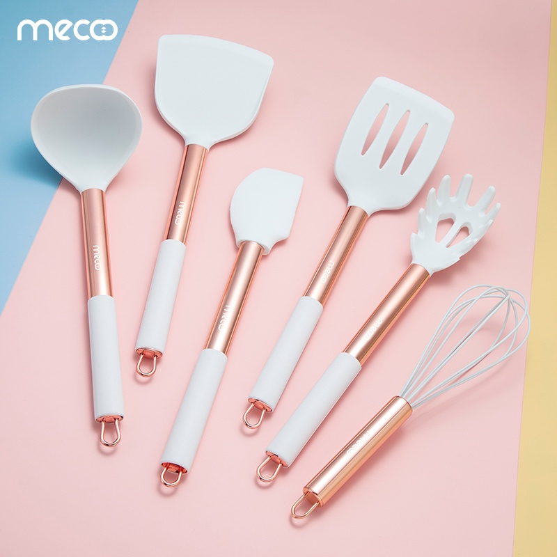 Mecoo Most Aesthetic 6in1 Antibacterial Spatula Set With Storage Rack 7 Pcs Premium Silicone Alat masak Aesthetic
