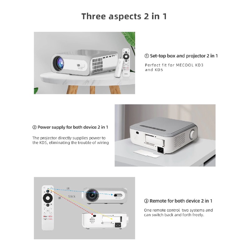 Proyektor dari MECOOL ini bukan sembarang proyektor karena di dalamnya tertanam Android TV Stick KM5 dari MECOOL sendiri, yang artinya proyektor ini menjelma menjadi sebuah Smart Projector dengan kehadiran TV Stick dari MECOOL yang sudah disertifikasi oleh Google dan sudah tertanam aplikasi-aplikasi yang sudah disertifikasi juga seperti YouTube, Netflix, Amazon Prime Video, Google Play dan lain sebagainya.