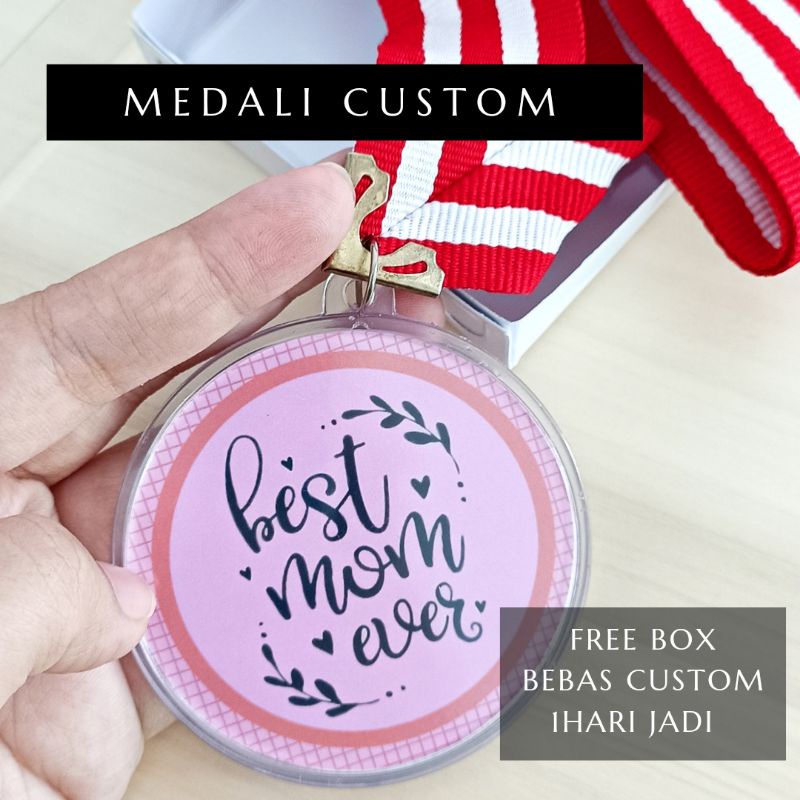 - FREE KOTAK MIKA (Warna dan jenis kotak random sesuai stok) - 1 HARI JADI ( jika desain sudah siap) contoh pesan senin dikirim selasa (HARI MINGGU & TANGGAL MERAH LIBUR) - BEBAS CUSTOM DESAIN (BOLEH PAKAI DESAIN SENDIRI ATAU PILIH TEMPLATE DESAIN YANG TERSEDIA) - BISA PILIH WARNA TALI SESUAI VARIASI STOK (JIKA PESAN BANYAK & WARNA TALI KURANG SILAHKAN CHAT KAMI) -WARNA BACKGROUND DARI DESAIN KAMI TDK BISA DIGANTI,JADI HANYA BISA GANTI KATA KATA/TAMBAH FOTO -DIAMETER MEDALI 7CM