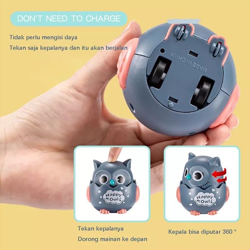 💎Bahan: Plastik 💎Ukuran: 7.5 * 8.5 * 8cn 💎Produk termasuk: 1 PCS mainan burung hantu 💎Fitur: ✨1. Tidak membutuhkan baterai, Anda dapat menggeser dengan menekan kepala ✨2. Kepala bisa berputar 360 ° ✨3. Bahan halus, bayi bisa bermain dengan aman