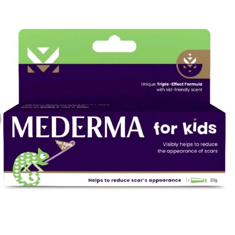 Orang tua akan menyukai Mederma untuk anak-anak karena membantu melembutkan dan menghaluskan bekas luka lama dan baru akibat luka dan goresan, jahitan, luka bakar, gigitan serangga, dan operasi. Tidak beracun dan tidak akan menodai pakaian, mudah digunakan, cepat menyerap.