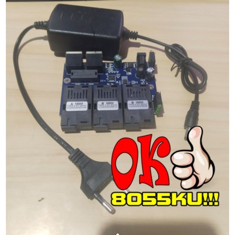 Spesifikasi : • Kategori : Media Converter • Connector Type : SC UPC/APC • Ethernet Port : 3 ports 10/100M Ethernet • Fiber Port : 3 Port 155m fiber • Fiber Type : Single Mode • Jarak Transmisi : 20km • Power Support 5-12V