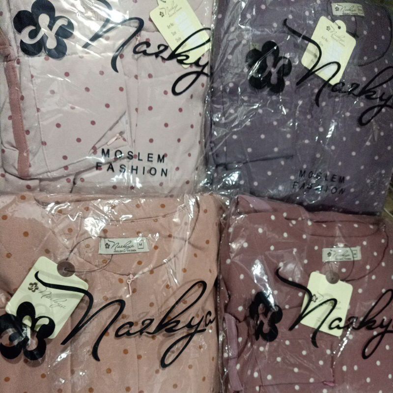 Medinna nazkya set khimar Uniqlo mix Ceruty premium by nazkya warna pastelen baju muslim wanita terbaru kekinian exclusive elegant model motif polkadot