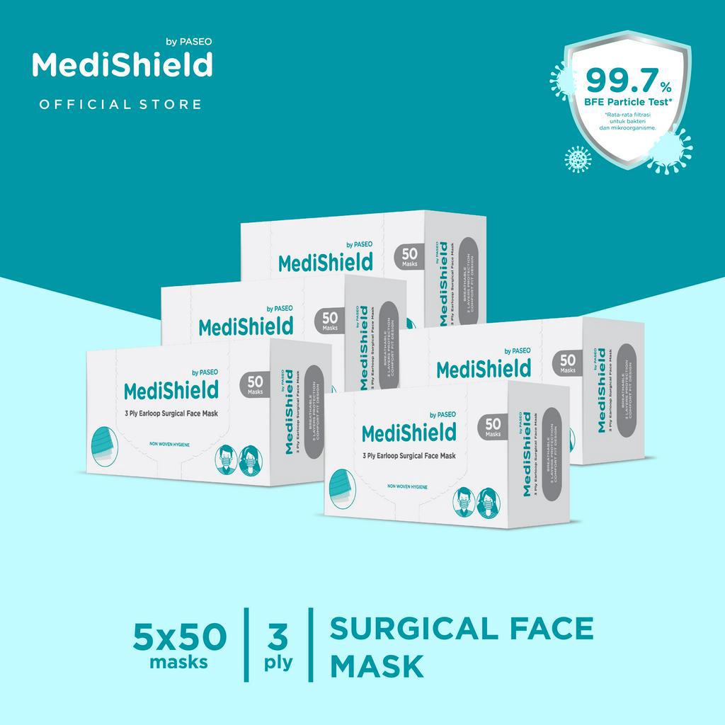 Detail Medishield by Paseo Masker Surgical Earloop 3Ply Box isi 50pcs/box x 5 Box