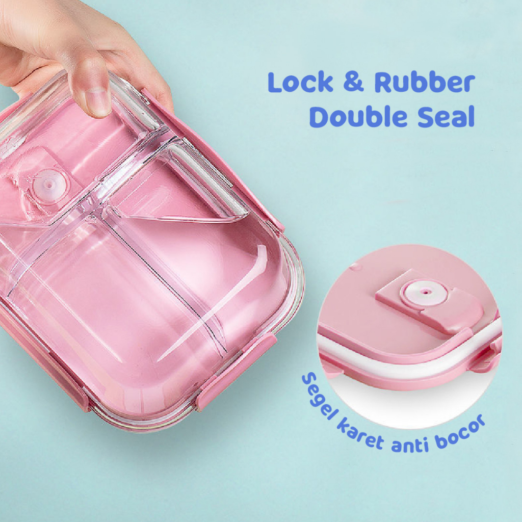 - Bahan kaca tebal dapat dipanaskan di microwave & oven (Tahan panas hingga 200ºC ) - Dapat disimpan dalam kulkas dan freezer (Tahan dingin hingga -20ºC) - Segel ganda lock dan silikon menutup dengan erat anti bocor dan kedap udara. - Desain unik dengan 3 pilihan warna (BIRU, HIJAU, PINK). - Tersedia juga varian 2 kolom dan 3 kolom (Ukuran Large 1040ml). - Bahan kotak kaca dan tutup plastik PP berkualitas FOODGRADE (Aman untuk makanan). - Lobang udara pada tutup fungsi mempermudah buka tutup.