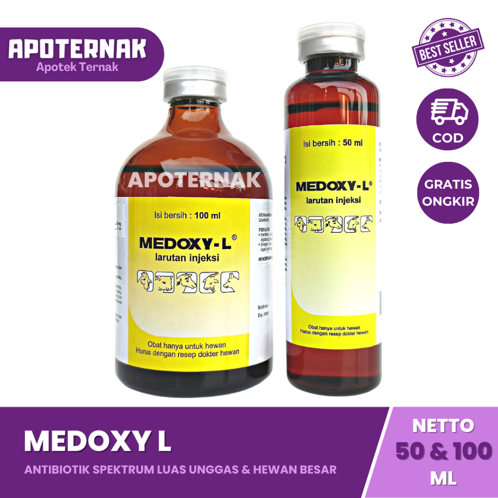 Hobi & Koleksi > Perawatan Kesehatan Hewan > Obat > MEDOXY L 100 ml & 50 ml | Obat Injeksi Untuk Ayam Kucing Sapi Domba Kuda Sakit Snot Ngorok CRD Berak Hijau | Medion