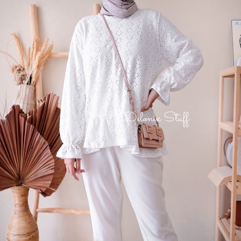 Meeda peplum lace top Price only 90.000 Ready 6 warna dustypink, denim, milo, burgundy, broken white, black