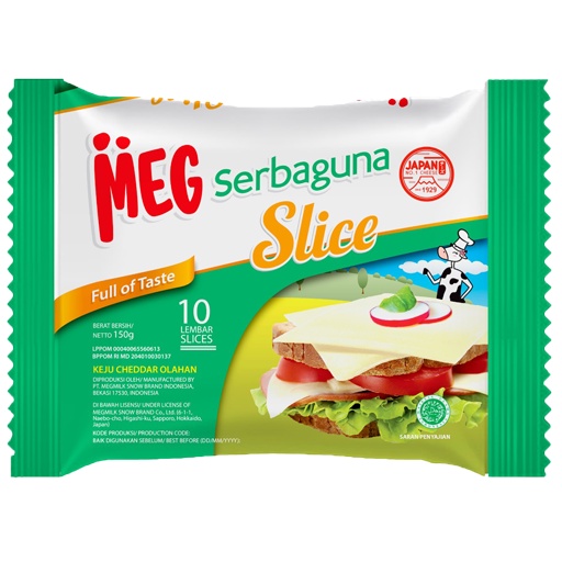 Keju lembaran dengan tekstur yang tidak lengket dimulut, memiliki rasa yang lembut dan creamy serta mudah dipakai untuk berbagai macam aplikasi. Menjadikan MEG Serbaguna Slice, Serbaguna Serba enak!