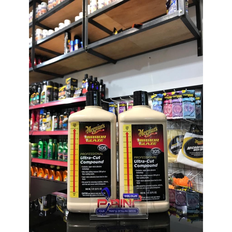 Meguiar's Ultra Cut Compound yang dipakai di salon mobil untuk menghilangkan goresan dan cacat lain pada cat kendaraan anda secara cepat.