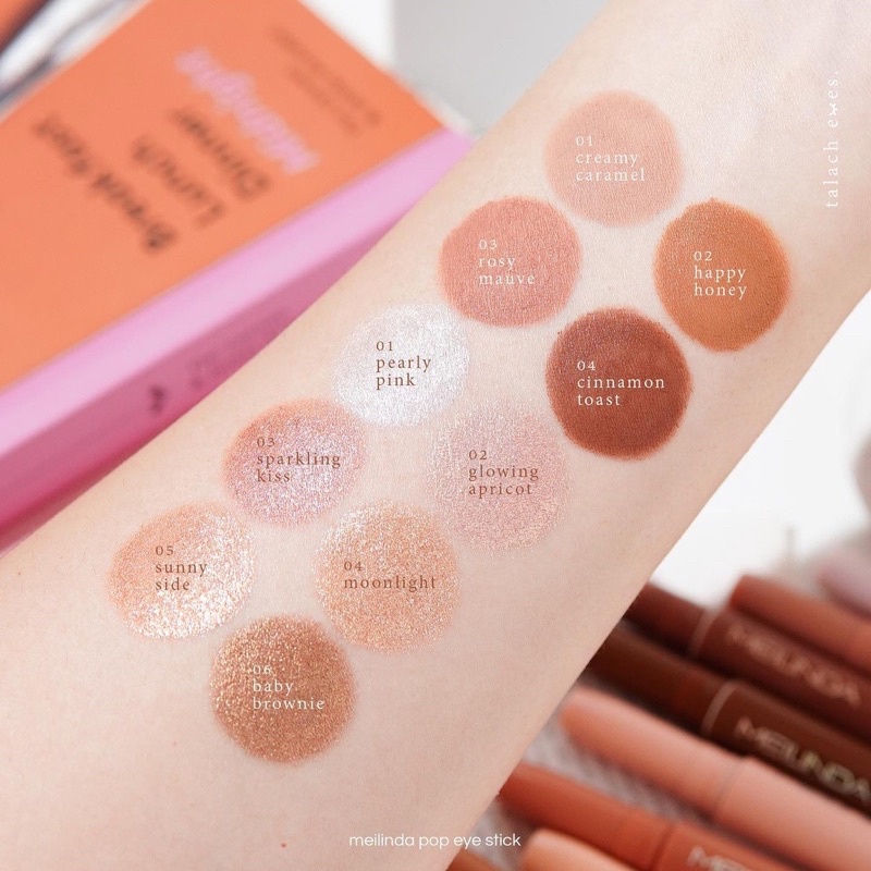 Eyeshadow stick, tekstur creamy matte, lembut dan halus. Tidak membuat berminyak atau lengket pada kulit. Memberikan hasil akhir glitter yang halus, tidak bernoda, tidak kering dan atau berdebu Nada warna dibuat untuk berbagai macam kegunaan. Ini bisa berupa eyeshadow, eyeshadow base, cream blush dan eyeliner dengan sifat tahan lama