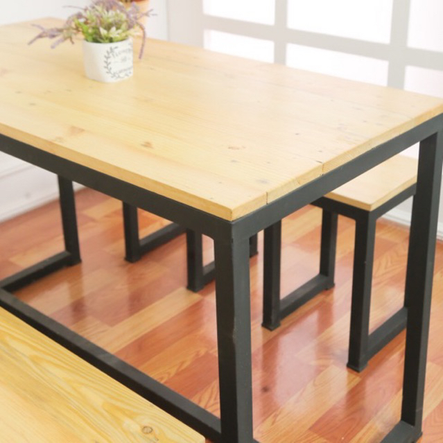 -Ukuran mejanya 60 x 118 x 75 (1pcs) -Untuk kursi pendek 30x30x45 (2pcs) -Untuk kursi panjang 30x118x45 (1pcs)