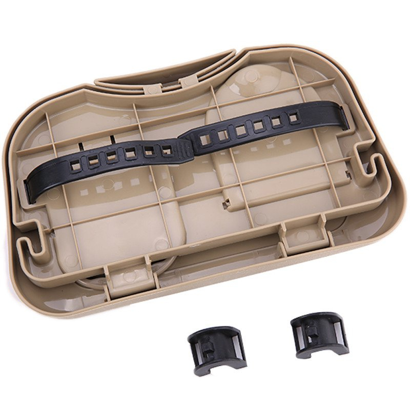 Rak atau meja khusus mobil ini menggunakan konsep lipat sehingga jika sedang tidak digunakan, Anda dapat melipatnya agar tidak memakan tempat. Anda dapat menggunakan rak ini sebagai tempat makanan, camilan ataupun minuman Anda. Dengan menggunakan rak ini, minuman dan makanan bisa lebih aman dari terjatuh dan tumpah.