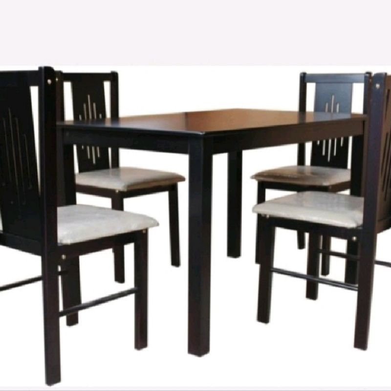 Ukuran Meja : 120 P x 80 L x 75 T cm Ukuran Kursi : 40 P x 40 L x 90 T cm Material : Kayu Karet ; Premium MDF Finishing : Melamine + Duco Dudukan : Jok Busa Leathrette
