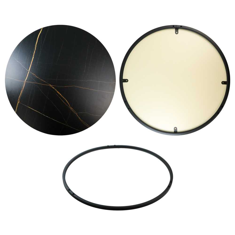 Meja ini didesain berbentuk bundar, dengan kaki-kaki meja juga bundar. Hal itu membuat meja inikokoh dan kuat menopang berbagai barang yang besar, seperti laptop, peralatan makanan dan lainnya.