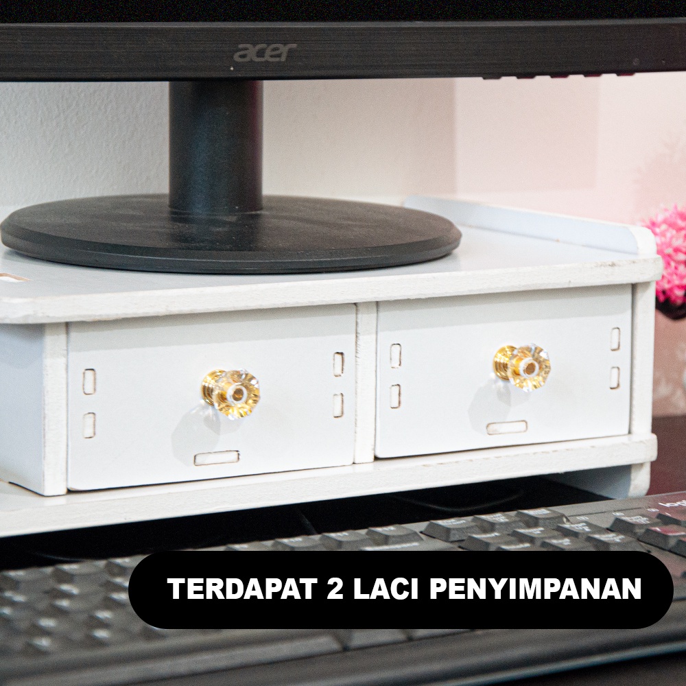 Meja Stand Tatakan Monitor Dengan 2 Laci Penyimpanan MDF - LC070