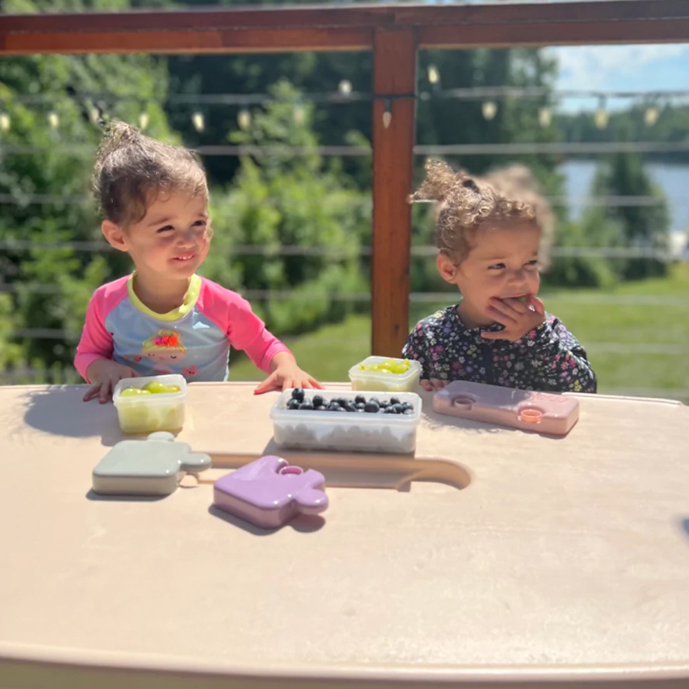 Wadah penyimpanan makanan “Puzzle Container” dengan 3 kompartemen membuat makan menjadi menyenangkan! Tiga kompartemen kotak bento masuk satu sama lain membentuk mainan puzzle yang menyenangkan dan berwarna-warni. Kotak bento yang lucu ini sangat cocok untuk anak-anak (dan orang dewasa!) dari segala usia, termasuk balita dan anak-anak, yang suka gelisah dan bermain saat ngemil dan makan siang.