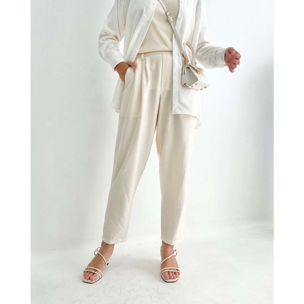 Material bahan japan linen Bahan ini bertekatur namun tetep lembut, tidak panas, tidak kaku, dan flowy, jatuhnya cantik saat dipakai ✔️ Detail pinggang belakang karet ✔️ Detail kantong kanan dan kiri Tersedia 8 pilihan warna dan 2 ukuran S/M,L/XL