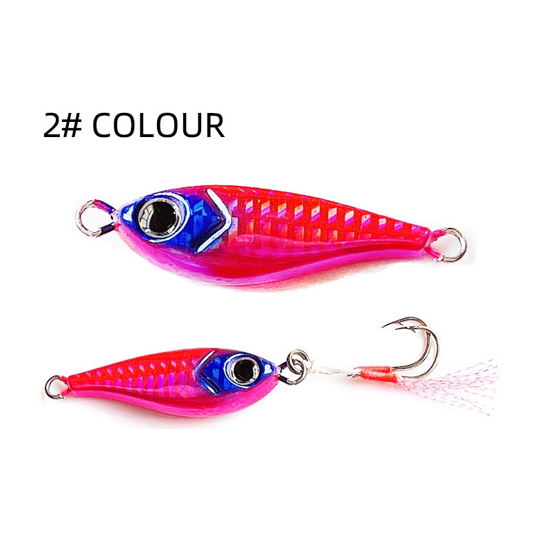 Ukuran 20g: 51mm, 12mm, 12mm# Kait ganda dua kali lipat. 30g: 56mm, 122, 12mm# Kait ganda dua kali lipat. 40g: 63mm, 144mm, 14mm# Kait ganda dua kali lipat. 60g: 71mm, 155, 15mm# Kait ganda dua kali lipat.