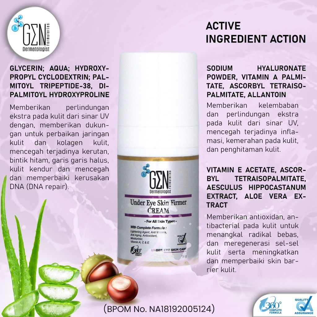Memberikan perlindungan ekstra pada kulit dari sinar UV dengan, memberikan dukun-gan untuk perbaikan jaringan kulit dan kolagen kulit, mencegah terjadinya kerutan, bintik hitam, garis garis halus, kulit kendur dan mencegah dan memperbaiki kerusakan DNA (DNA repair).