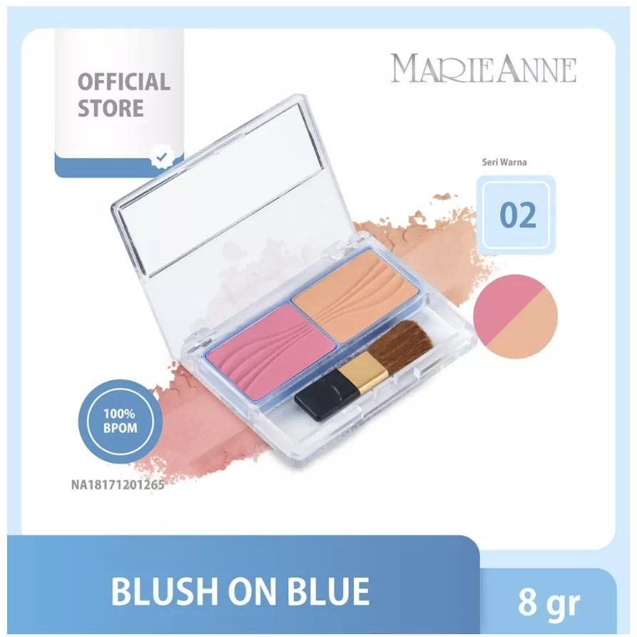 Marie Anne Blush On Blue memberikan kesempurnaan untuk rona pipi anda dengan warna yang natural dan dapat dipakai untuk mencapai penampilan yang sempurna dimanapun dan kapanpun. Campuran bahannya yang halus memberikan kelembutan disetiap sapuan warnanya. Marie Anne Blush On Blue dilengkapi dengan kaca dan brush applicator untuk pengaplikasian lebih mudah,rapi, dan merata. Tersedia 3 pilihan warna untuk Marie Anne Bush On Blue yaitu nomor 1, 2, dan 3.