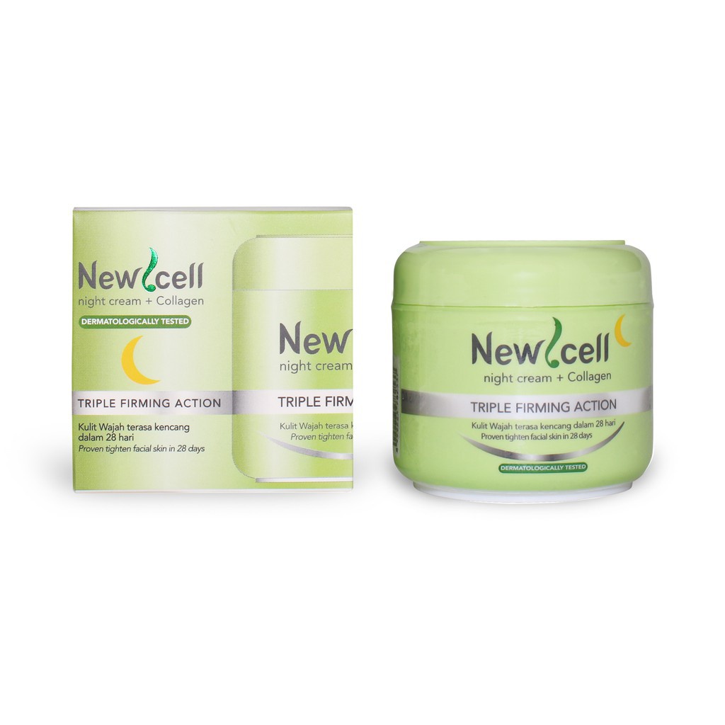 New Cell Day Cream dan New cell Night Cream menjadikan kulit wajah tampak lebih kencang dalam 28 hari. Triple Firming Action membantu meremajakan/ memperbaiki struktur kulit, meningkatkan kelembaban kulit, menyamarkan kerut wajah.