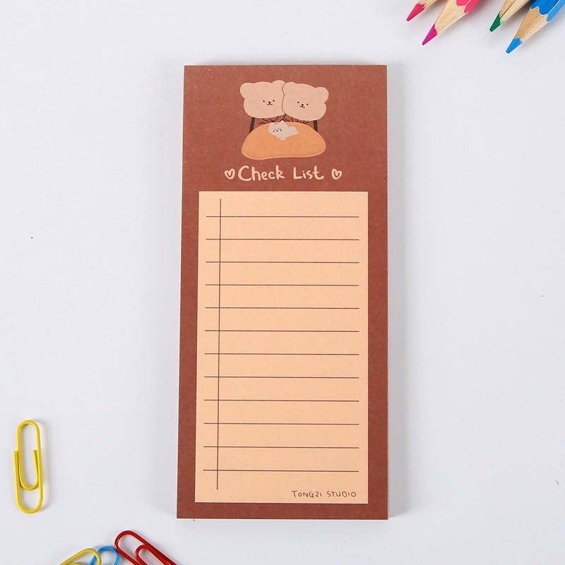 Detail MEMOPAD AESTHETIC STICKY NOTE PANJANG BERUANG COKLAT