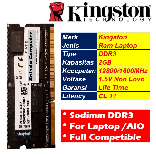 Deskripsi produk : * Barang 100% Baru * Pemakaian untuk PC * Kapasitas DDR3 2/4/8GB * Speed 1600MHz / 12800 * Kompatible ( Cocok ) dengan semua Laptop/Aio yang menggunakan DDR3 * Premium Quality, menggunakan IC CHIP Yang Ori * Voltage : 1.5V DDR3 untuk 2GB / 1.35V DDR3 untuk 4/8GB * Manufacture KINGSTON * Jenis RAM LAPTOP / AIO