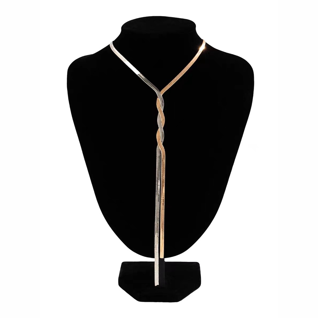 Memutar Y Berbentuk Herringbone Kalung Abstrak Datar Rantai Ular Emas Perak Lariat Kalung Choker Seksi Panjang Liontin Kalung Gaya Minimalis Rantai Dada Wanita Aksesoris Fashion