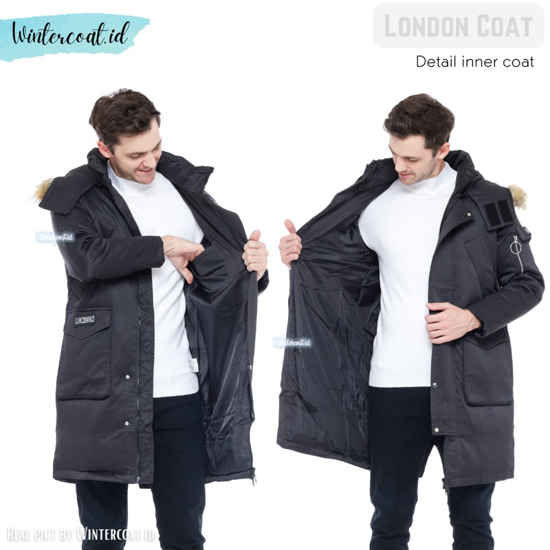 Detail Men long winter coat padded padding jacket panjang london musim dingin pria jaket cowok waterproof snow salju thermal import