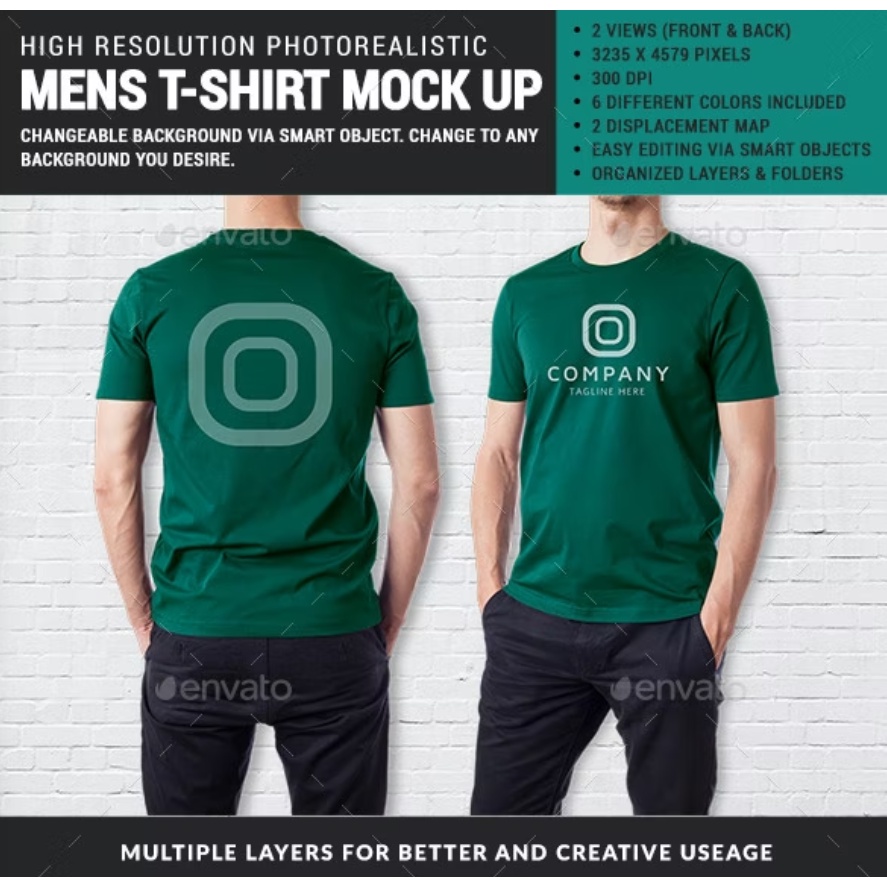 Features 3235×4579 Pixels 300 DPI 2 PSD files (1. front view 2. back view) Organized Layers Male Model Grey brick wall texture included Changeable T-Shirt Color 6 different color shades included Displacement map for each view easy to use smart objects User guide PDF file included