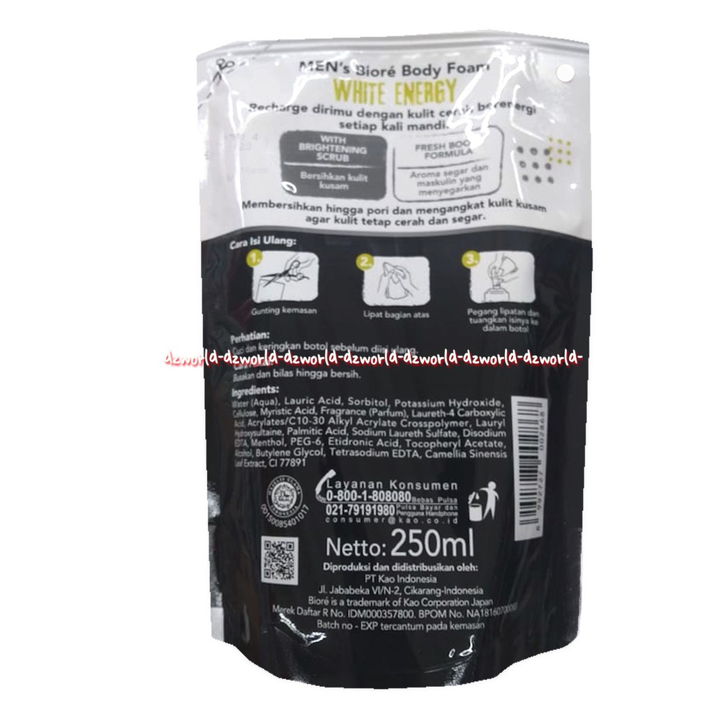 Detail Men's Biore Body Foam 250ml White Energy Refill Sabun Cair Men Biore Isi ulang