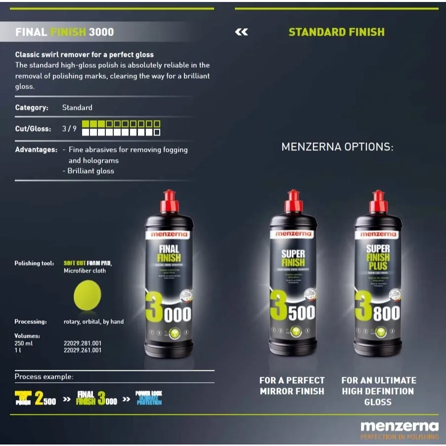 MENZERNA Final Finish 3000 1 Liter Polish High Gloss Kompon Halus Penghilang Baret Halus Motor Mobil Penghapus Swirl Mark Hologram Laba Laba Pembersih Lecet Goresan Ringan Pengkilap Pengkilat Cat Waterbase